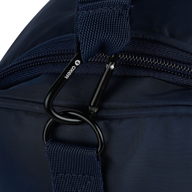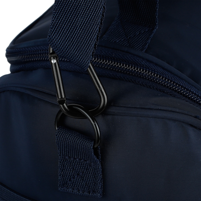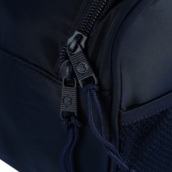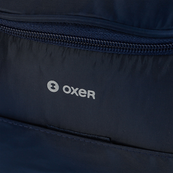 Possui alça de mão resistente para fácil transporte e fechamento em zíper para garantir segurança.