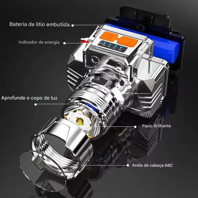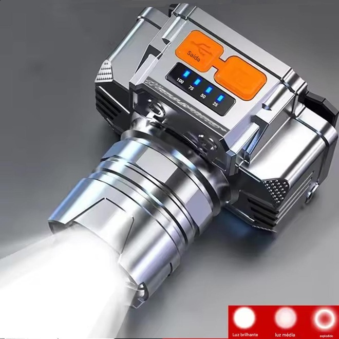 Lanterna Cabeça Gold Sports Retro Led RecarregáveL Prova dÁgua 3 Modos Iluminação 1800 lúmens - Foto 1