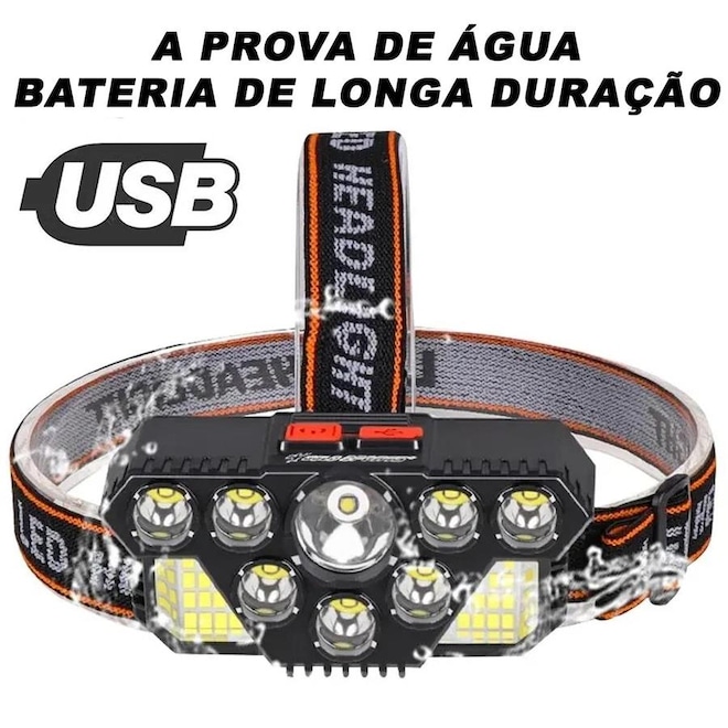Lanterna de Cabeça Gold Sports Holofote Pro Recarregável 4 Model Bateria de Lítio a Prova Água