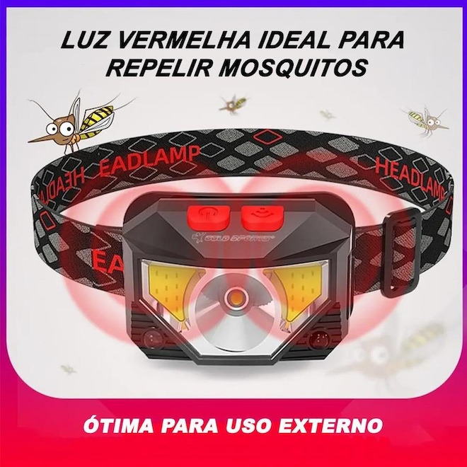 Lanterna de Cabeça Gold Sports Holofote Pro Recarregável 8 Model Bateria de Lítio a Prova de Água
