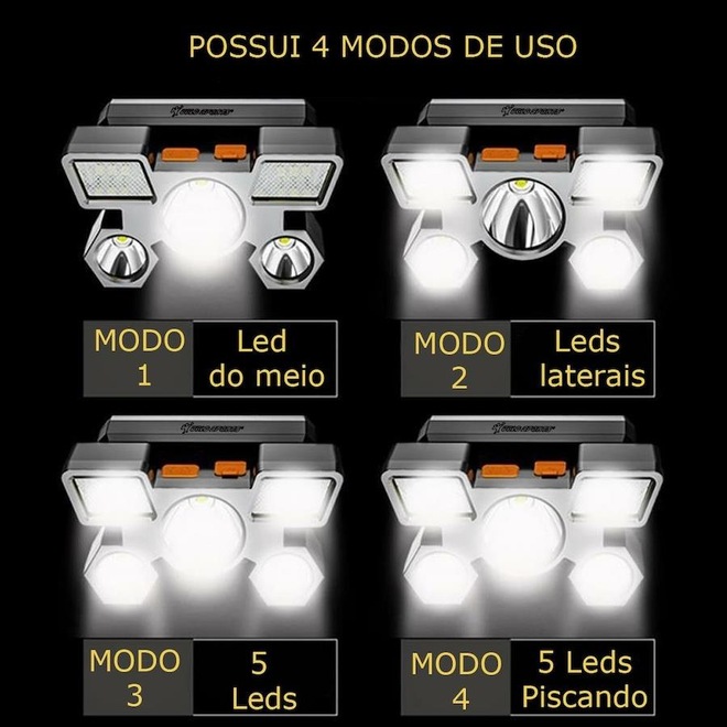 Lanterna de Cabeça Gold Sports Holofote Recarregável 4 Model Bateria de Lítio a Prova de Água