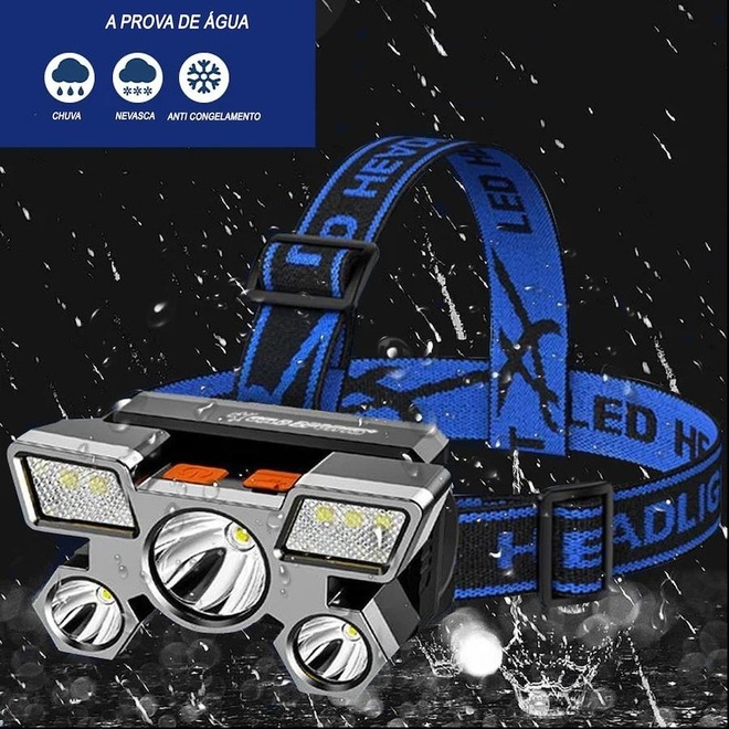 Lanterna De Cabeça Gold Sports Holofote Recarregável 4 Modelos de iluminação Bateria de Lítio A Prova de Água e ideal para vários esportes e atividades. A lanternas de cabeça é leve e ajustável até 90° e suas tiras elásticas a mantém firme É muito fácil de ser colocada e ajustada na sua cabeça, possui 5 desenho de leds diferentes e 4 modos de iluminação. A sua iluminação é de alto alcançe e seus leds são de cor branca