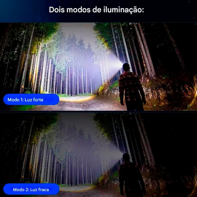 -[Modo multiposição]: Dois modos de iluminação, luz forte e luz baixa; a cabeça suporta ajuste de ângulo de 180 graus, que é mais conveniente de usar e a faixa de iluminação é mais ampla.Pode iluminar cerca de 30-50 metros em árvores ao iluminar em campo. As folhas também podem ser vistas claramente.
