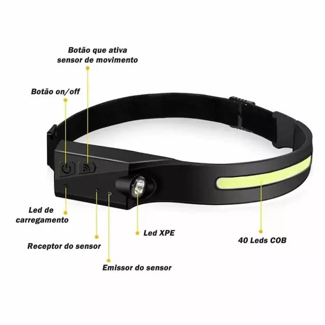 Lanterna Led de Cabeça Profissional Recarregável Camping Pesca Pescaria Sensor de Movimento