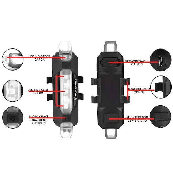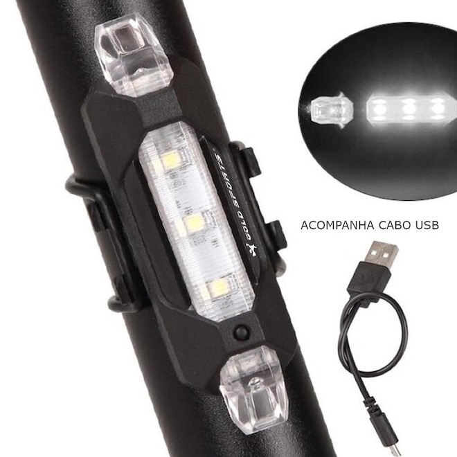 Lanterna para Bike Sinalizadora Gold Sports Led Clear 4 Modos Funções Cabo Usb Recarregável