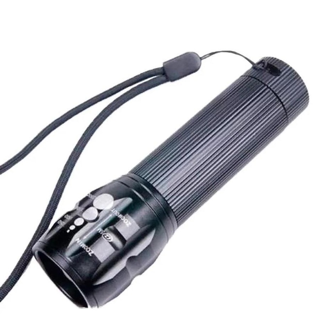 A Lanterna Tática com zoom é leve e muito bem acabada, produzida em alumínio e resistente à água e à quedas