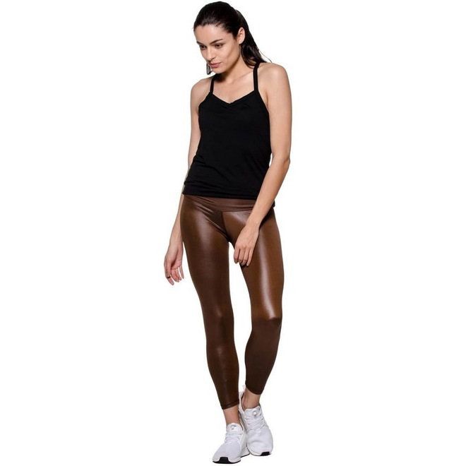 Calça Legging em tecido Cirrê Adora! modas, modelagem tradicional na cor marrom com efeito brilhante característico das calças cirrê.