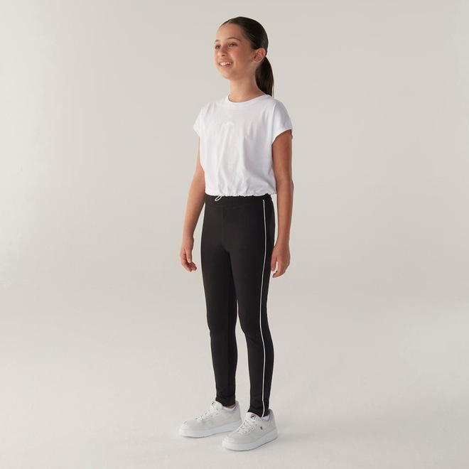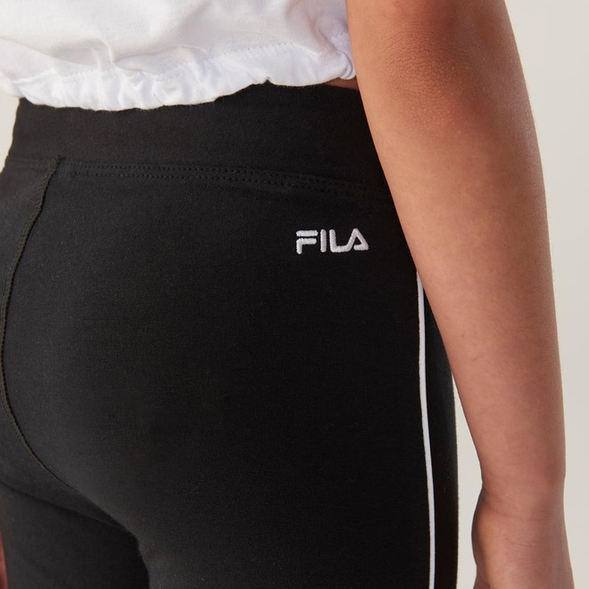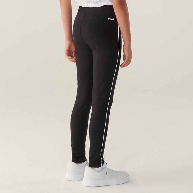 Legging feminina em modelagem slim fit em algodão com elastano, garantindo liberdade de movimento. Possui cós com elástico interno para firmeza, vivos laterais modernos e bordado FILA Letter no lado direito para autenticidade. Certificada pela OEKO-TEX, é livre de substâncias nocivas e utiliza viscose de florestas sustentáveis.