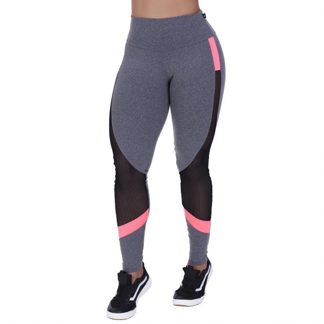 Calça Legging Orbis Fitness Polimiada Recortes Tela e Neon - Feminina