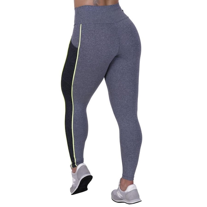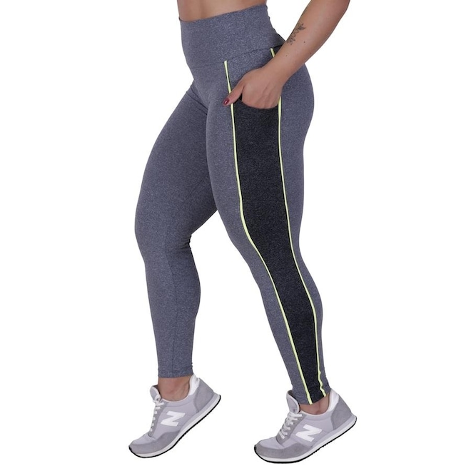 Calça Legging Orbis Fitness Recorte Lateral com Bolso Detalhe Neon - Feminina