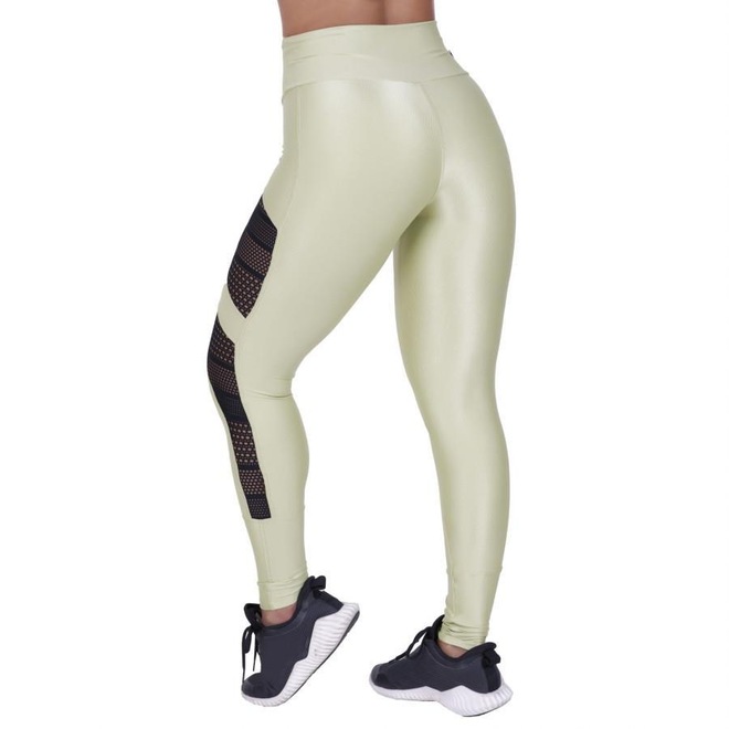 Calça Legging Orbis Fitness Recortes Modeladora Compressão Detalhes em Tela - Feminina