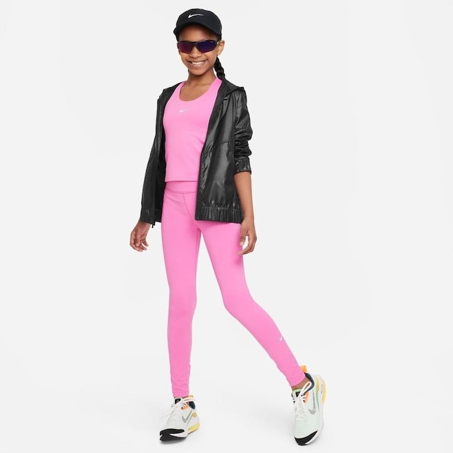 Entre a escola, o treino e os jogos com os amigos, os seus dias são ocupados. É por isso que criamos a Legging Nike One. A nossa legging mais versátil já criada, ela te ajudará a permanecer seca e confortável a manhã até a noite, não importa o quão duro você jogue. Adeus, suor! Tecnologia Nike Dri-FIT absorve o suor da sua pele para evaporação mais rápida, ajudando a manter você seca e confortável. Cobertura Confortável Modelo cós alto e painel em V atrás ajudam a manter você coberta ao correr, pular e se alongar. Armazenamento secreto O bolso oculto na parte interna do cós permite o armazenamento de objetos pequenos quando você estiver em movimento. Detalhes do Produto Ajuste firme para sensação de abraço no corpo Corpo: 83% poliéster/17% spandex. Forro reforçado: 100% poliéster. Lavável à máquina Importado Tamanho & Caimento Modelo usa tamanho M e mede 1,47 mref: M0ZLE0