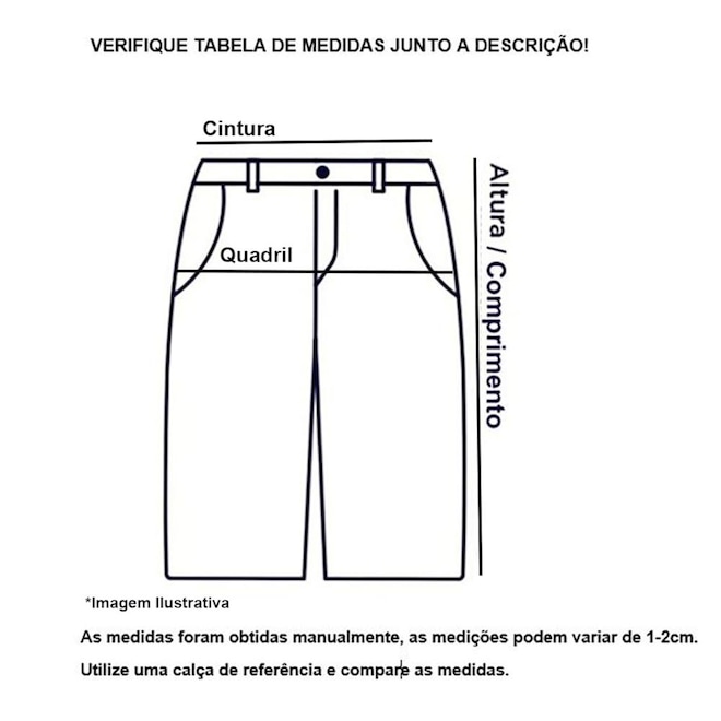 Medidas Aproximadas (Comprimento x Largura Cintura x Largura Quadril):