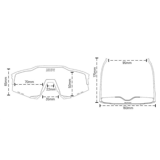 Gravação do logotipo: O logotipo da HUPI é gravado a laser na lente e também pode ser encontrado em alto-relevo na lateral dos óculos. Isso garante a autenticidade e a qualidade do produto.