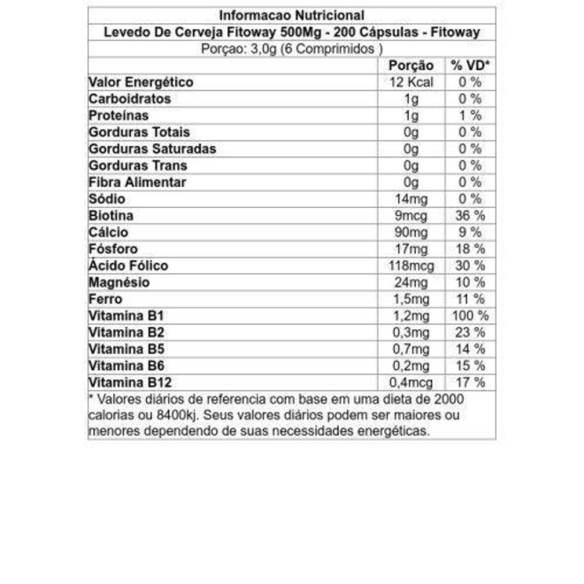 Levedo de Cerveja Fitoway 500mg - 200 Cápsulas