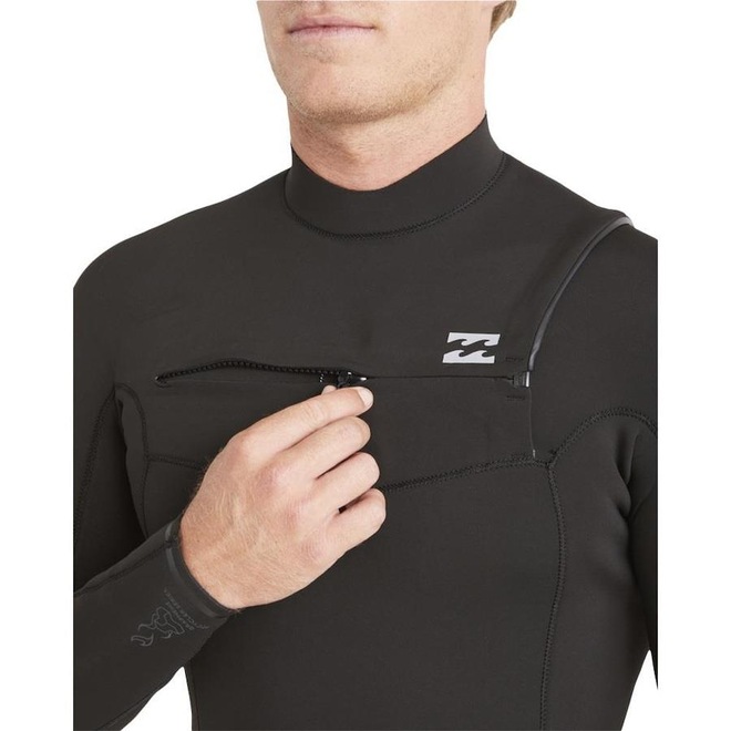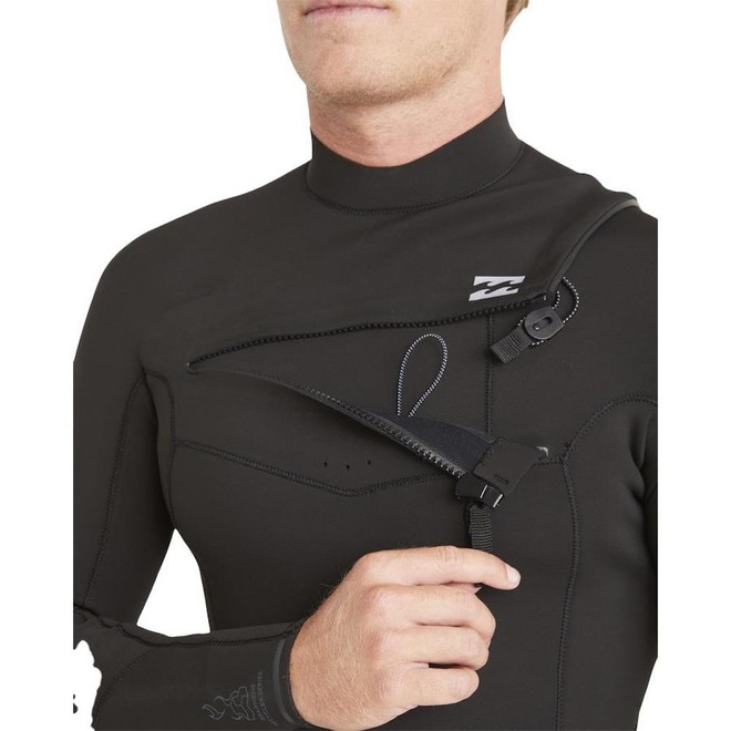 Long John Billabong com espessura de 202mm, abertura chest zip, stretch, stretch de silicone, espuma superlight parcialmente reciclada, costura GBS com faixa de borracha super-flex aplicada por máquina, silk na parte frontal, traseira e na canela, além de etiquetas personalizadas.