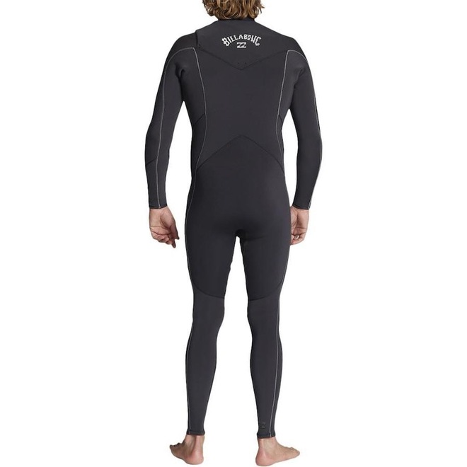 Long John Billabong com espessura de 302mm, abertura back zip, stretch, stretch de silicone, espuma superlight parcialmente reciclada, costura GBS, silk na parte frontal, traseira e na canela, além de etiquetas personalizadas.