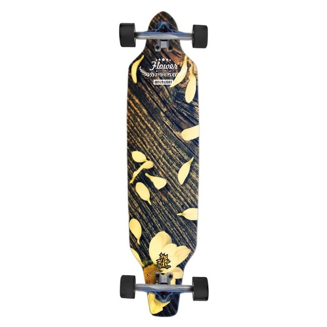 Skate Longboard Wood Light Montado Flower Yellow