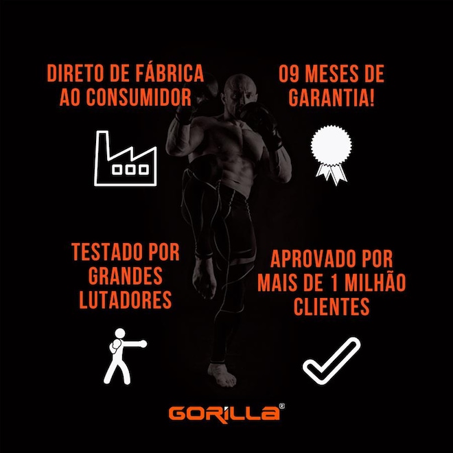 Sua estampa incorpora elementos necessários para a caracterização da luva, como o contorno icônico do Gorilla e nosso slogan em inglês Beyond a Martial Art, a Lifestyle que revela sua verdadeira identidade dos ringues para a vida. Além disso, sua composição interna conta com camadas de espuma de alta densidade, proporcionando conforto e leveza nos movimentos, sem perder sua função de resistir aos impactos dos golpes. Inclusive seu fechamento em Velcro Original integra facilidade na colocação e proteção dos punhos.
