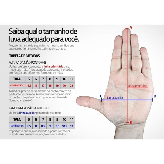 Tecnologias: Ergonomic Shape: formato ergonômico, onde a luva se molda no formato da mão e punho Flex: sistema com recortes especiais que prioriza a mobilidade das mãos Dorso Super Grip: material mais resistente que possibilita durabilidade da luva