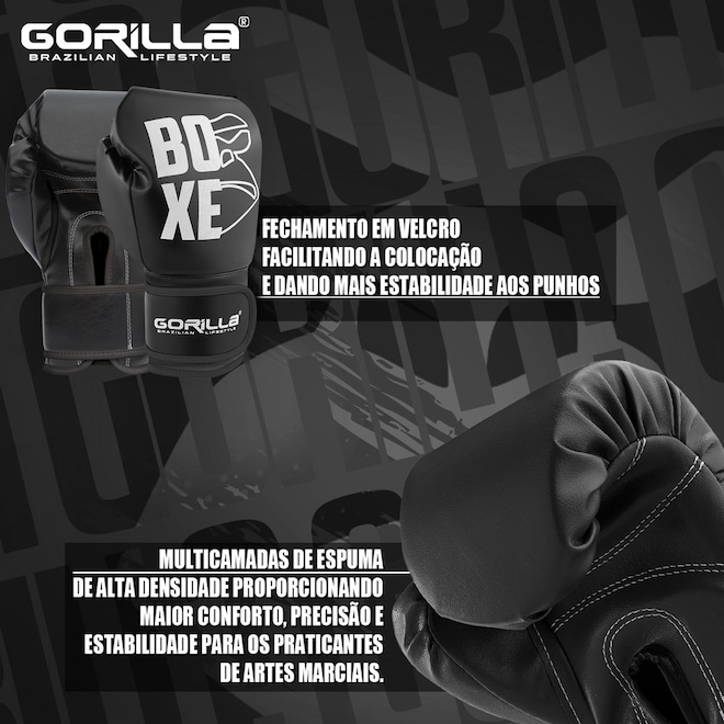 4. Luva De Boxe 12 Oz Expressive Black Gorilla Muay Thai Kickboxing Fight MMA Combate Profissional - Foto 4
