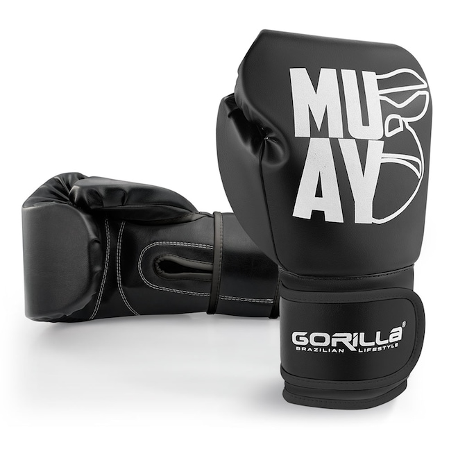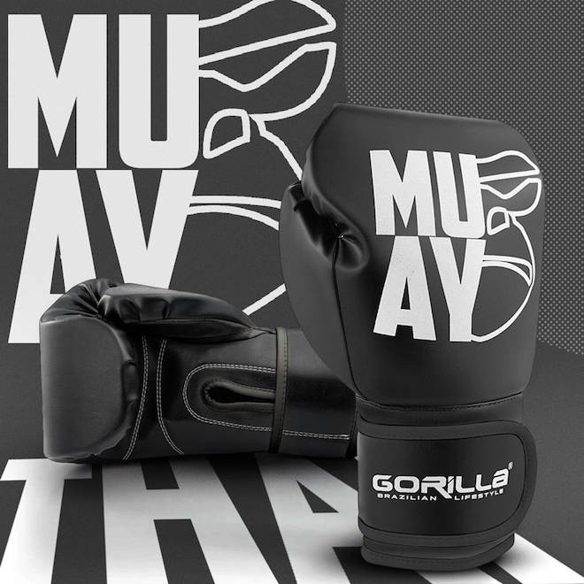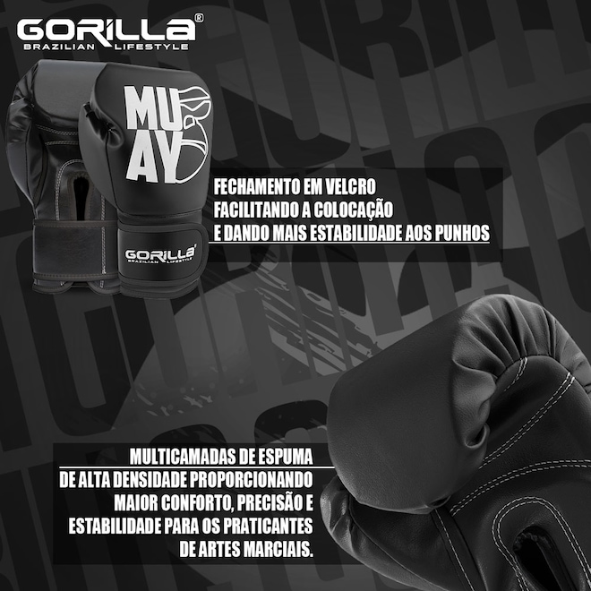 Luva de Muay Thai 12 Oz Expressive Black Gorilla Boxe Kickboxing Fight MMA Combate Profissional