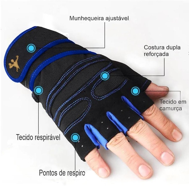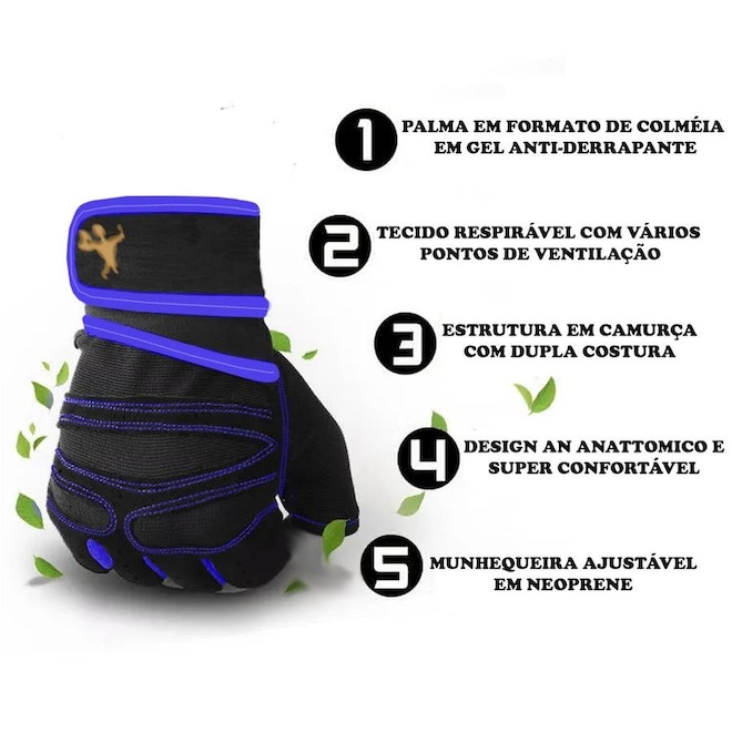 Com ele, você não precisa se preocupar em suar suas mãos durante o exercício. Ele vai fazer você agarrar firmemente as coisas em suas mãos, não deixando que suas mãos escorreguem.Material: Microfibra, polyester neoprene e gel Marca Gold Sports Largura da palma:p 8-9cm, m 9-10cm, l 10-11cm