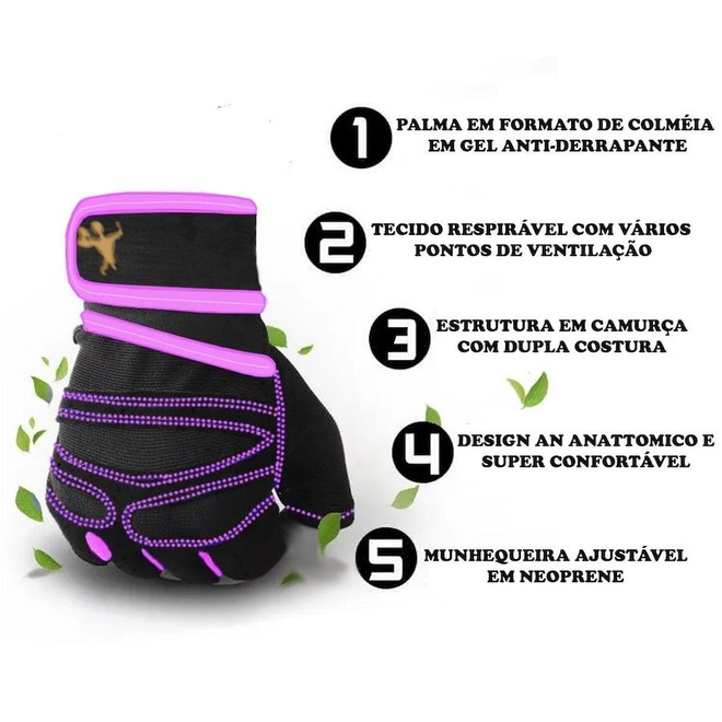 Com ele, você não precisa se preocupar em suar suas mãos durante o exercício. Ele vai fazer você agarrar firmemente as coisas em suas mãos, não deixando que suas mãos escorreguem.Material: Microfibra, polyester neoprene e gel Marca Gold Sports Largura da palma:p 8-9cm, m 9-10cm, l 10-11cm