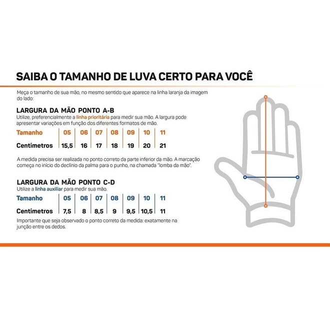 - Dorso Reforçado - Material aplicado no dorso da luva que aumenta sua durabilidade.