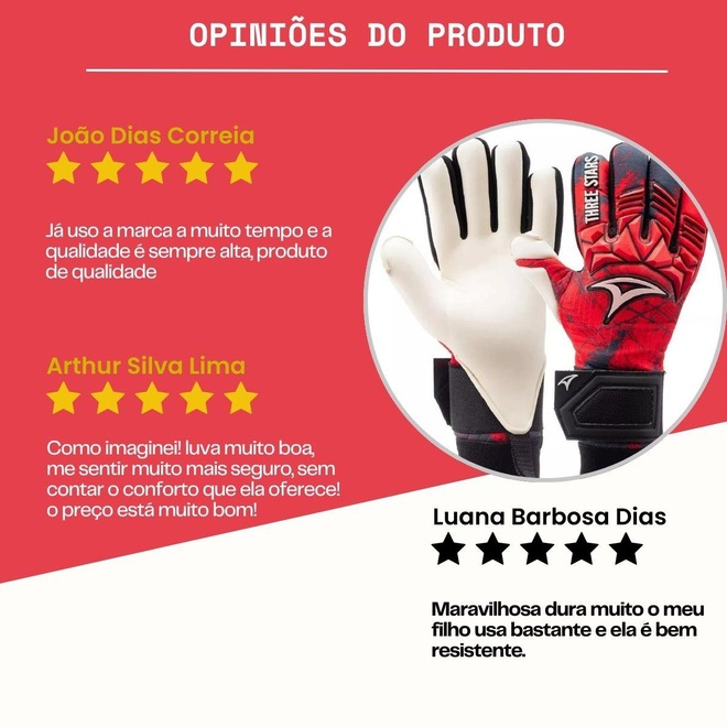 Luva de Goleiro Three Stars Thunder - Adulto - Foto 1