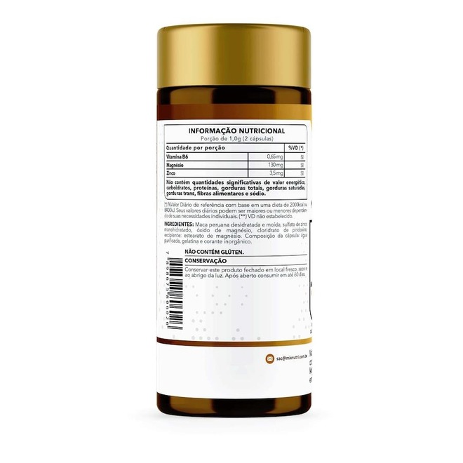 Produto de fórmula registrada pela Mix Nutri, que combina a maca peruana (500mg por porção) com a vitamina B6 e os minerais magnésio e zinco atingindo 50% da IDR.BENEFÍCIOSMais disposição e energia, melhora da libido e desejo sexual de homens e mulheres.