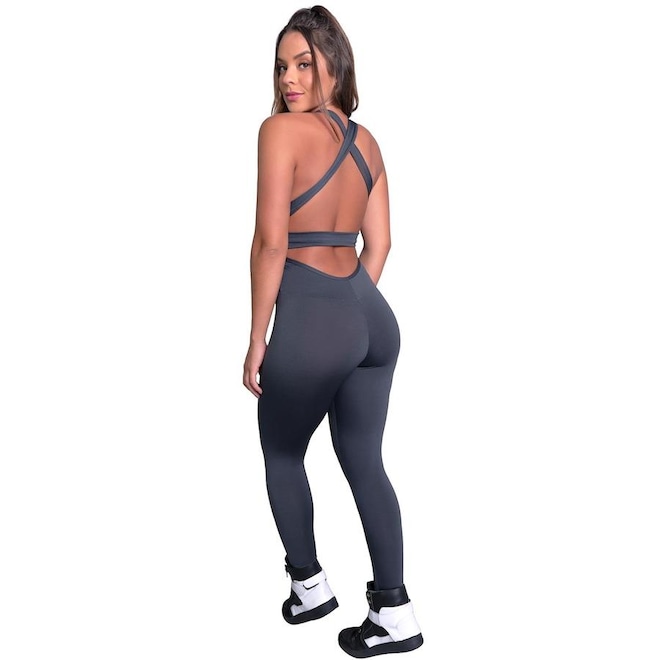 Macacão longo confeccionado em suplex maleável e confortável, com detalhe nas costas.