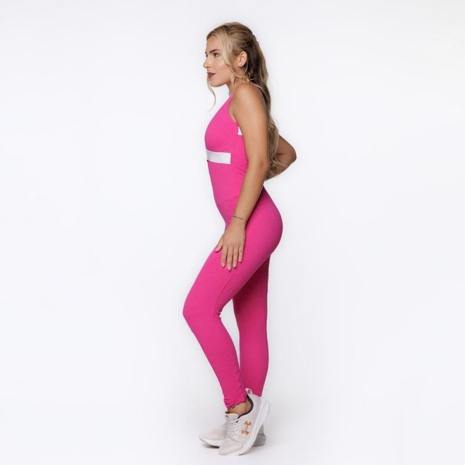 Macacão Fitness Costa Cruzada Bojo Jacquard Poliamida Textura - Feminino