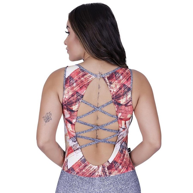 Macacão Fitness com Bojo Orbis Fitness Decote Tiras Costas Fator UV50+ - Feminino