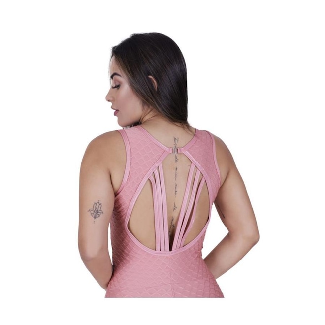MACACÃO FITNESS TEXTURA RELEVO RECORTES DETALHE CIRRE LISO TIRAS NAS COSTAS BOJO REMOVÍVEL