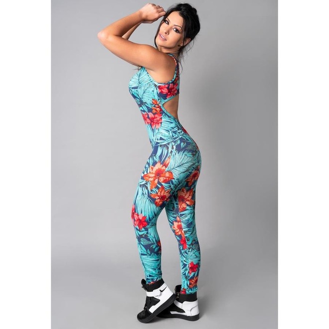 Macacão longo confeccionadoem suplex maleável e confortável, com detalhe nas costas.