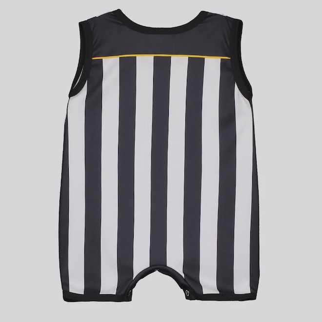 Composição: 100% PoliésterCor predominante: BrancoEscudo: SublimadoOrigem: NacionalGênero: UnissexClube: SantosManga: RegataGola: CarecaDimensões Aproximadas (A x L):01 A 03 MESES - P: 39 x 23 cm03 A 06 MESES - M: 41 x 25 cm06 A 09 MESES - G: 43 x 27 cm09 A 12 MESES - GG: 45 x 29 cm