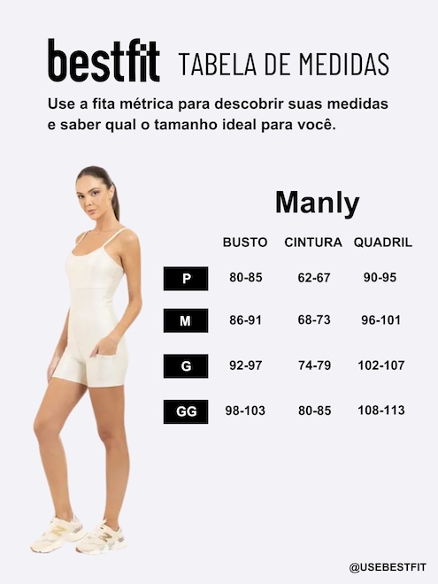 O Macaquinho Bolso Com Bojo Manly Feminino une praticidade, estilo e sustentação em uma peça única. Com bojo, bolsos laterais e alça fina, é ideal para treinos ou composições casuais, garantindo conforto e sofisticação. Invista em versatilidade e performance com o seu Manly. Especificações: Feito em malha resistente. Com forro frontal. Com bojo removível. Bolsos laterais. Alça fina. Benefícios: Proporciona sustentação e modelagem natural com bojo integrado. Oferece liberdade de movimento e conforto em qualquer atividade. Bolsos laterais práticos para armazenar pequenos itens essenciais. Forro frontal que garante segurança e zero transparência. Design sofisticado com alça fina que valoriza a silhueta. Composição: 88% poliamida. 12% elastano. Cuidados e Conservação: Lavar à mão ou em ciclo delicado. Utilizar sabão neutro. Não usar alvejante. Secar à sombra em local ventilado. Não passar ferro diretamente sobre a peça.