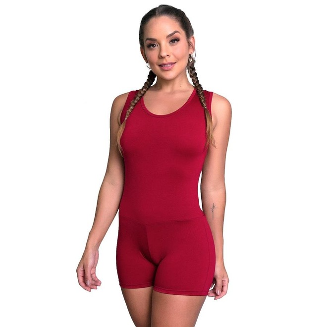 Macaquinho curto com detalhes na costas, confeccionado em suplex maleável e confortável.