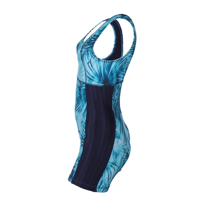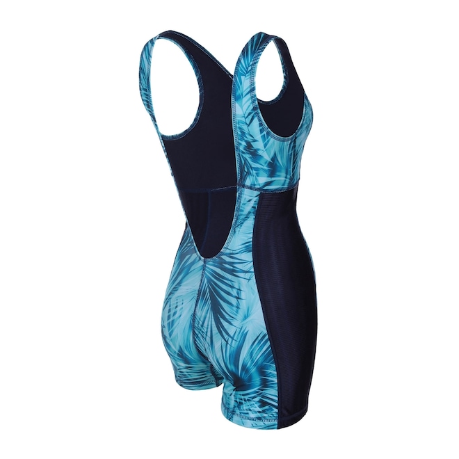 O Macaquinho Folhagem Speedo traz ao design mais clássico mais jovialidade e a alegria, com uma composição de tecidos estampado e de alta compressão na lateral do corpo, com efeito modelador. Fácil de vestir, possui costas em U e costura abaixo do busto que auxilia na sustentação dos seios. Indicado para quem busca durabilidade, conforto e segurança em atividades aquáticas.