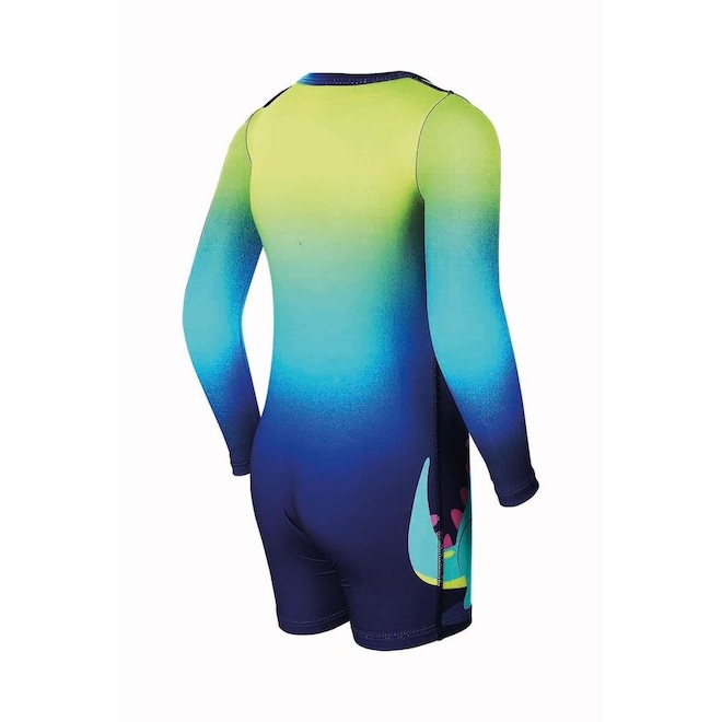 O Macaquinho Manga Longa Dino é feito para proteger o seu pequeno. Construido em poliéster e elastano, tem proteção UV 50+. Possui uma linda estampa degradê de Dinossauro e botão de pressão nas pernas. Além de forro e touquinha.