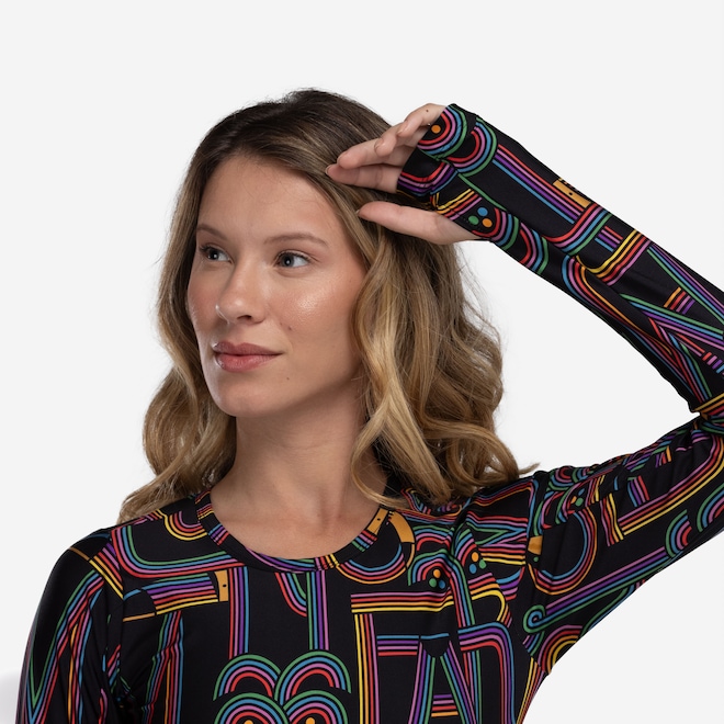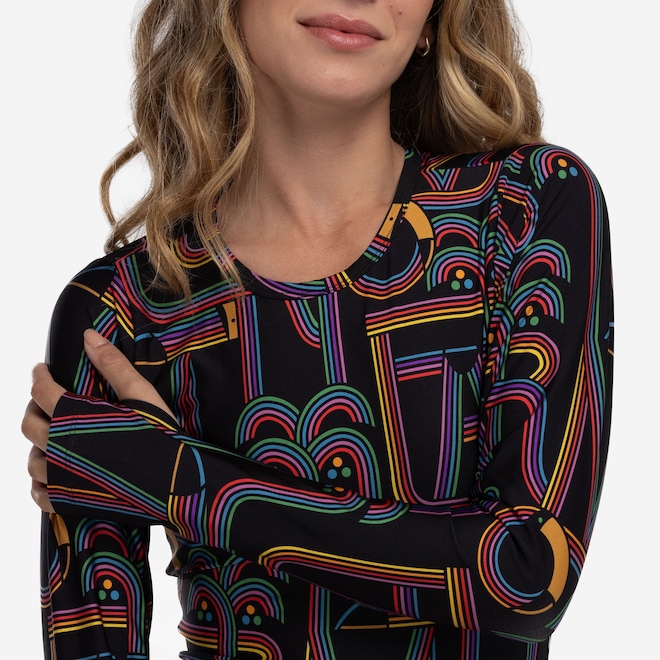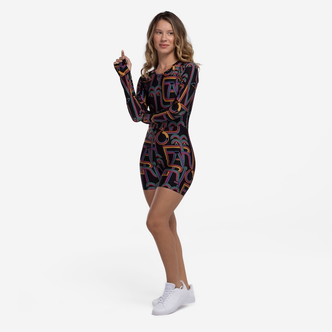 Confeccionado em tecido de toque macio e elástico, esse modelo conta com mangas longas e abertura para os dedos, garantindo um ajuste perfeito.