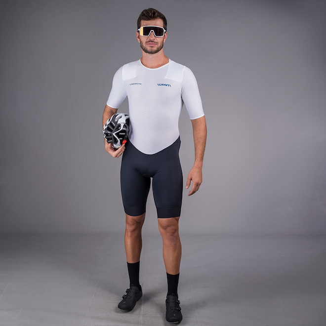 A Woom demonstra todo seu DNA inovador através deste novo projeto. Inspirada na biodinâmica, a ideia foi trazer um conceito de exoesqueleto, com uma peça extremamente aderente ao corpo, e ao mesmo tempo muito confortável, gerando uma sensação de segunda pele. Assim, nasce o Macaquinho de Triathlon com manga Carbon Exo Woom, o primeiro macaquinho de triathlon sem zíper do mundo (patente requerida). Com uma proposta totalmente inovadora e disruptiva, este novo produto é uma nova opção e possibilita uma nova experiência para triatletas que buscam performance e gostam de estar na vanguarda quando o assunto é novas tecnologias. Para que este projeto fosse possível, a Woom utilizou em toda parte superior o consagrado e exclusivo tecido Carbon 3D, com sua ultra elasticidade 4Way, além das propriedades de leveza e aerodinâmica, somadas há uma modelagem totalmente inovadora, permitiram vestir a peça, de forma confortável e sem zíper. Na parte inferior, o Carbon Skin abraça a musculatura das pernas do atleta e auxilia na performance graças a tecnologia EMANA que estimula a microcirculação sanguínea. Além disso, o produto conta com tapes com grip italianos na barra das pernas, forro Carbon Tri e costuras e acabamentos com máquinas de ultima geração. Vivencie uma experiência totalmente nova com o Macaquinho Carbon Exo Woom.