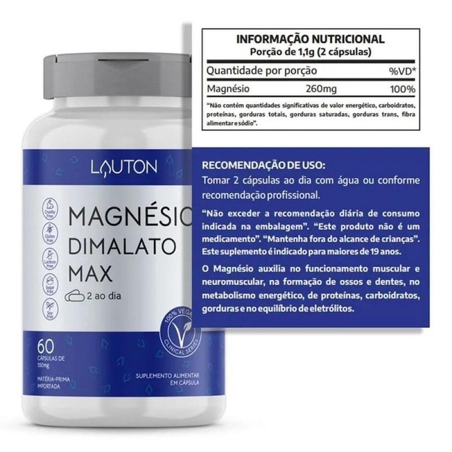 O Magnésio Dimalato Max é um suplemento que reúne duas substâncias indispensáveis para o corpo humano: o ácido málico e o magnésio. Segundo estudos, manter os níveis desses componentes ajuda na produção de energia e no funcionamento regular do organismo.