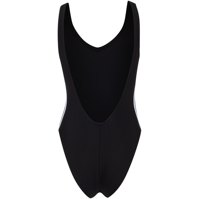 O decote nas costas e as Três Listras laterais complementam o visual icônico.