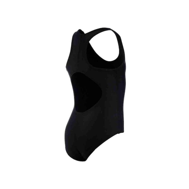 A modelagem das costas apresenta decote nadador vazado, assegurando o conforto para a prática esportiva e momentos de lazer.