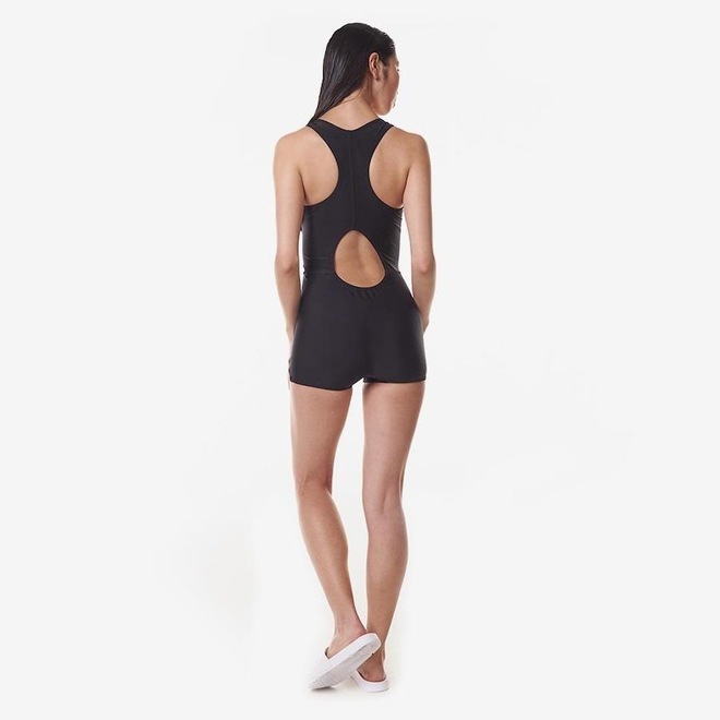 Macaquinho modelo nadador confeccionado em poliamida com Lycra® com tecnologia AMNI UV PROTECTION, que oferece fator de proteção solar FPS 50+ dos raios UVA e UVB.