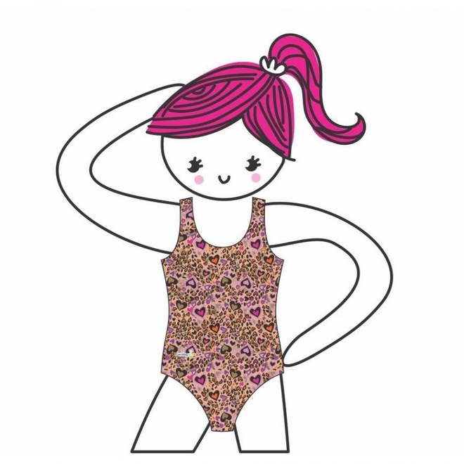 Maiô para Natação Swim Colors Onça Apaixonada Rosa - Infantil