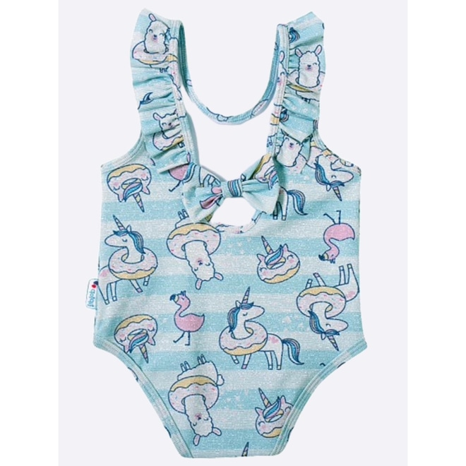 Design Charmoso: Estampa de unicórnio, babados na parte de trás e um laço adorável, combinando estilo e diversão.