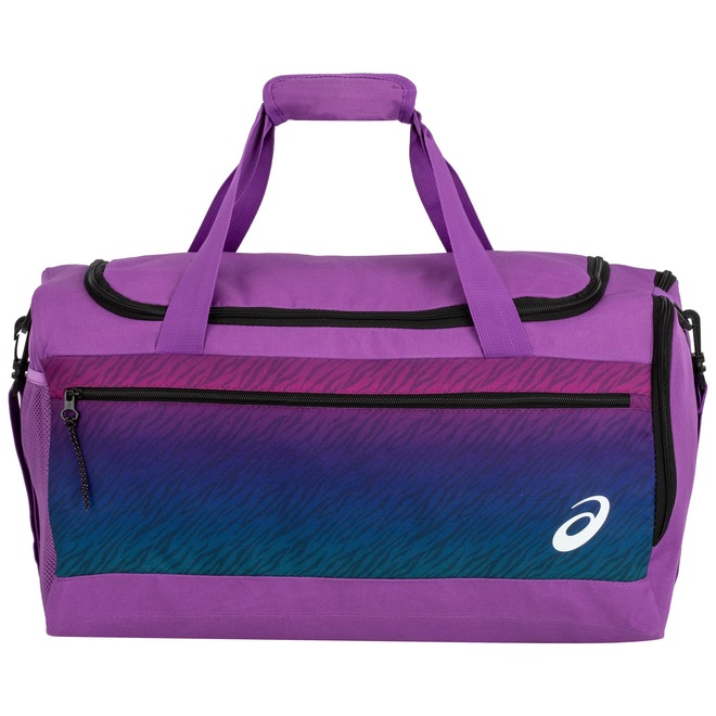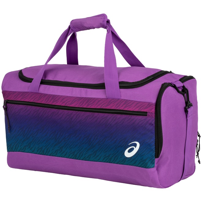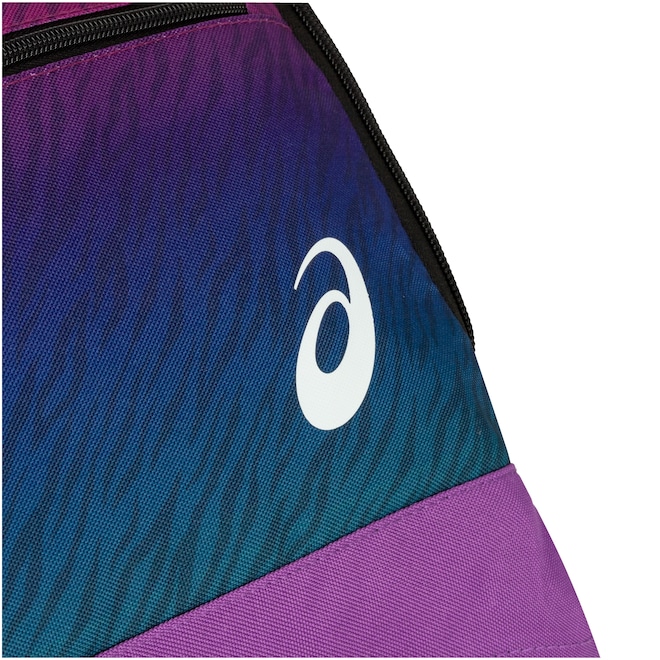 A mala ASICS contém compartimento principal amplo, com bolso interno e divisória com velcro, além de externo com porta-calçados, bolso e divisória em velcro e bolso lateral com zíper.